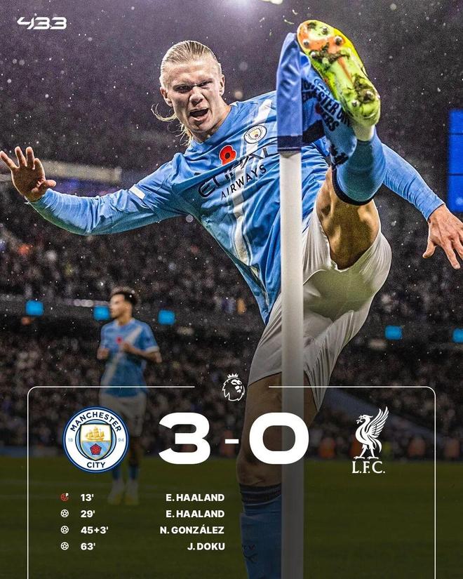 英超-哈兰德头球破门多库世界波 曼城3-0利物浦
