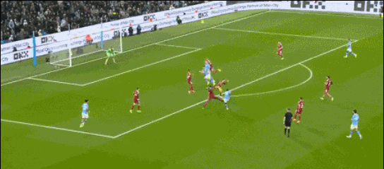 上半场伤停补时阶段,尼科-冈萨雷斯远射,皮球击中范戴克折射入网,曼城半场2球领先。